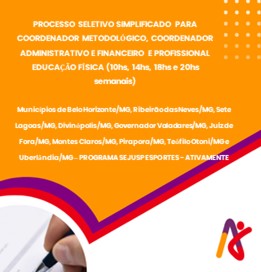 Processo Seletivo Simplificado municípios de Belo Horizonte/MG, Ribeirão das Neves/MG, Sete Lagoas/MG, Divinópolis/MG, Governador Valadares/MG, Juiz de Fora/MG, Montes Claros/MG, Pirapora/MG, Teófilo Otoni/MG e Uberlândia/MG– Programa SEJUSP ESPORTES – ATIVAMENTE – período para as inscrições 12/02/2026 à 25/02/2026